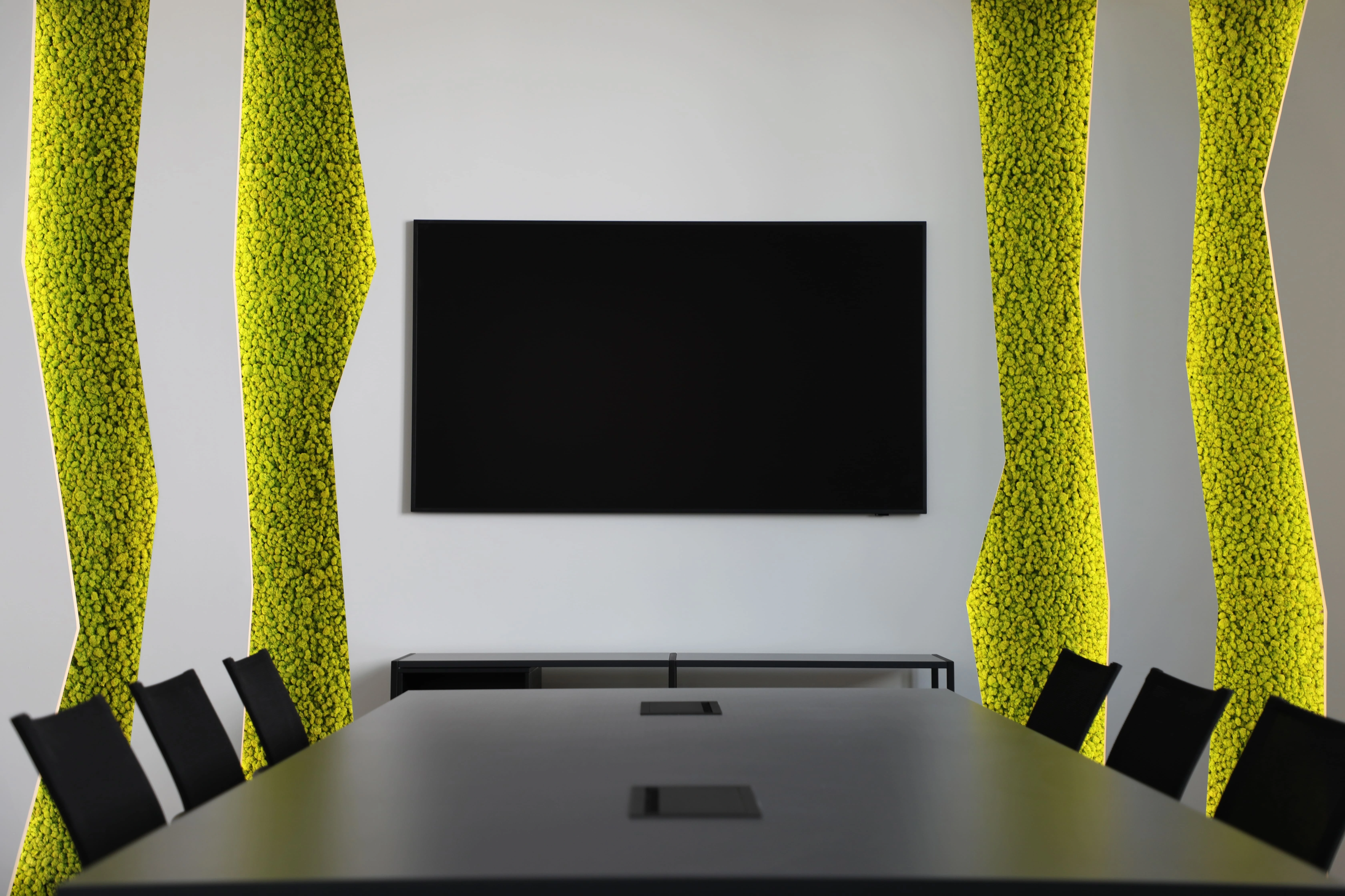 Mooswände und Bepflanzung bringen "Biophilic Design" in die sterile Industrieumgebung.